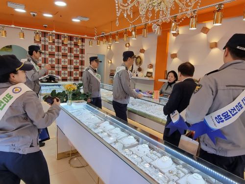 내용: 최근 발생한 귀금속 관련 범죄에 대응하고 예방을 강화하기 위해 주얼리특구상인회 및 중부경찰서(황정현 서장 외), 에스원 대구광역지사와 함께 합동순찰을 실시.
